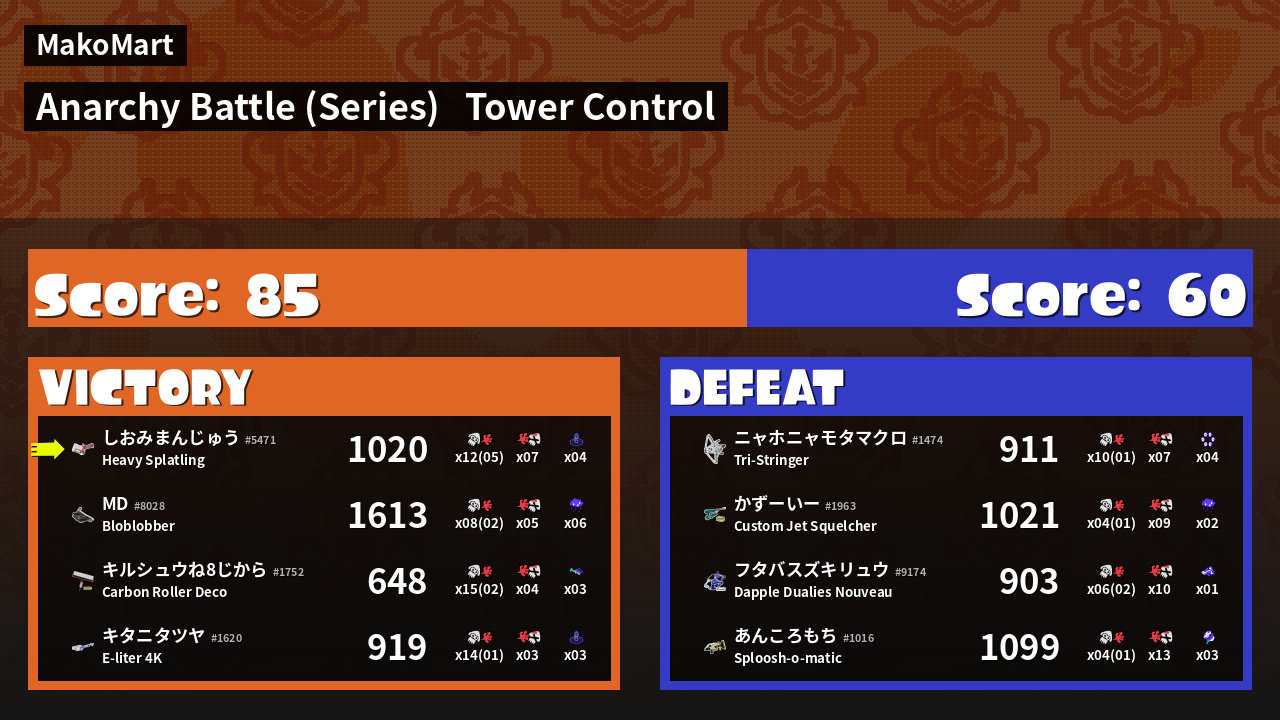 | Mode | Tower Control - Anarchy Battle (Series) | ||