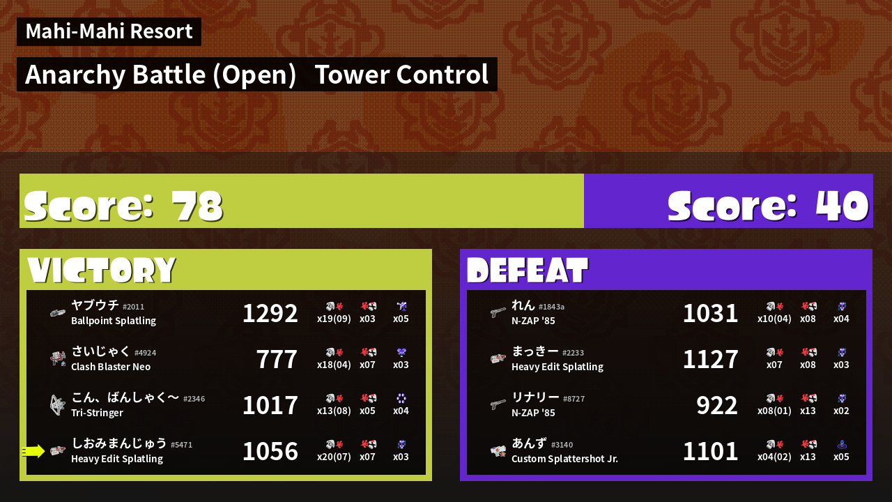 | Mode | Tower Control - Anarchy Battle (Open) | ||