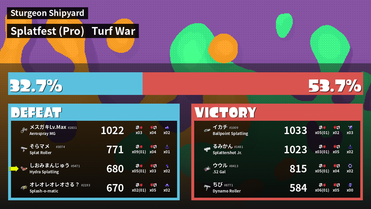 | Mode | Turf War - Splatfest (Pro) | ||