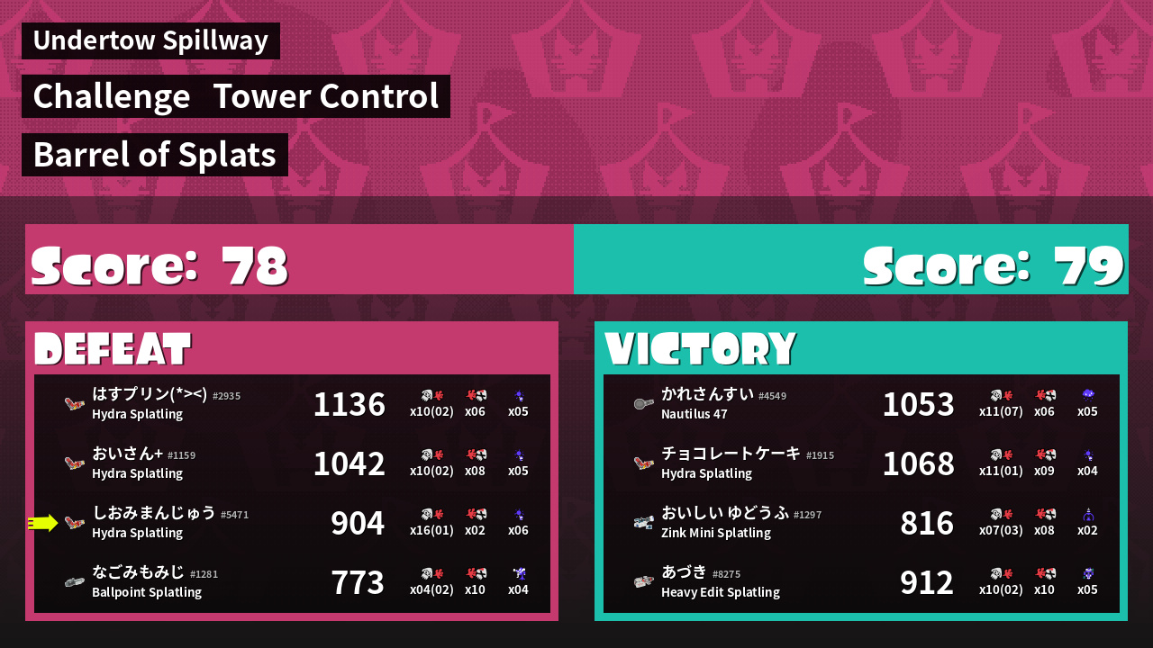 | Challenge | Barrel of Splats Muster as much firepower as you can<br />in this battle of the splatlings! | ||