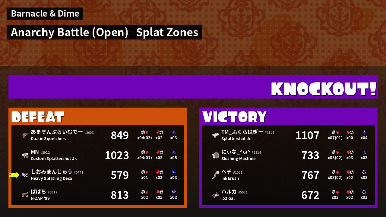 | Mode | Splat Zones - Anarchy Battle (Open) | ||