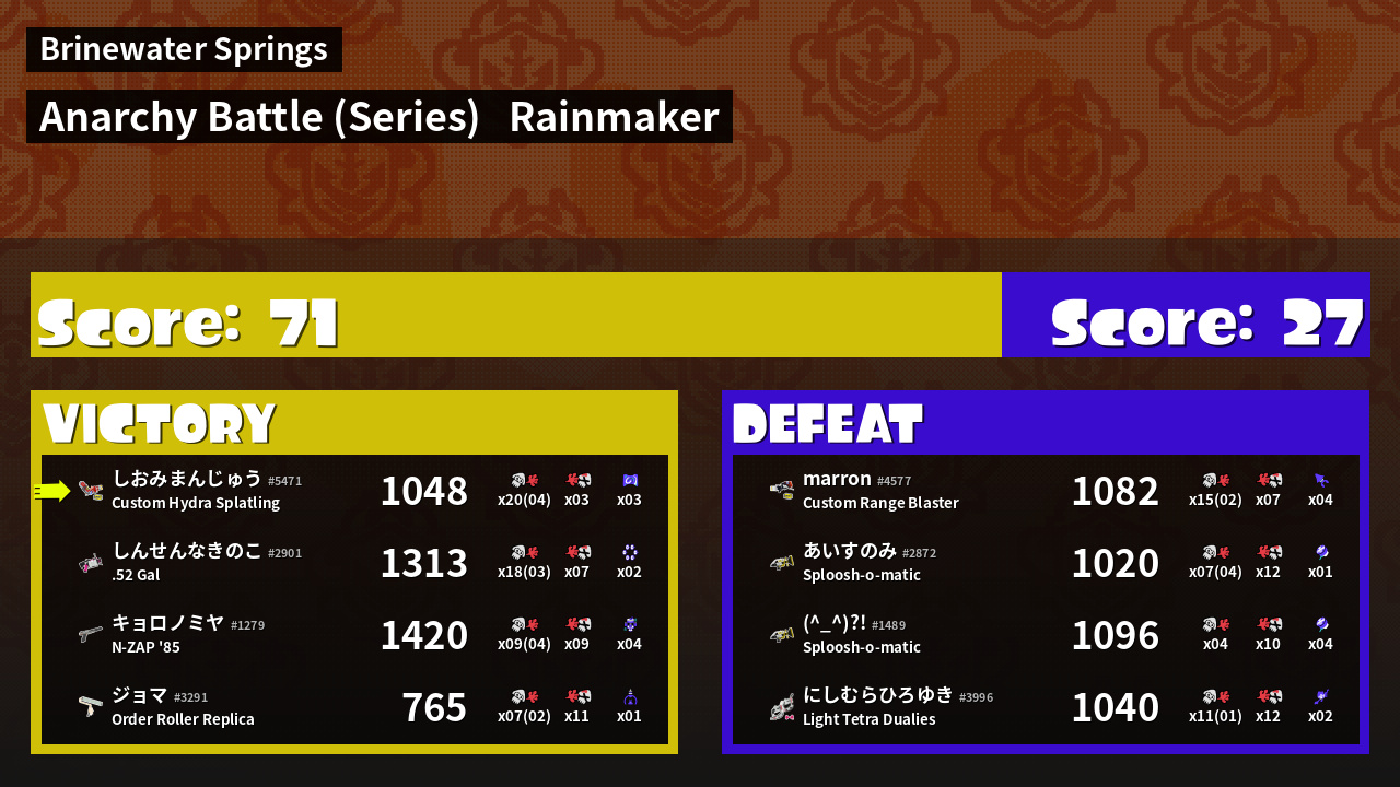 | Mode | Rainmaker - Anarchy Battle (Series) | ||
