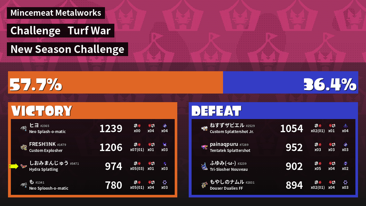 | Medals | #1 Splat Assister #2 Overall Splatter #2 Popular Target | ||