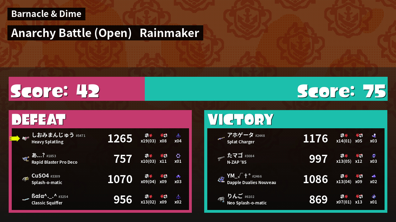 | Mode | Rainmaker - Anarchy Battle (Open) | ||