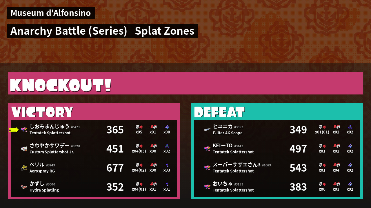 | Mode | Splat Zones - Anarchy Battle (Series) | ||