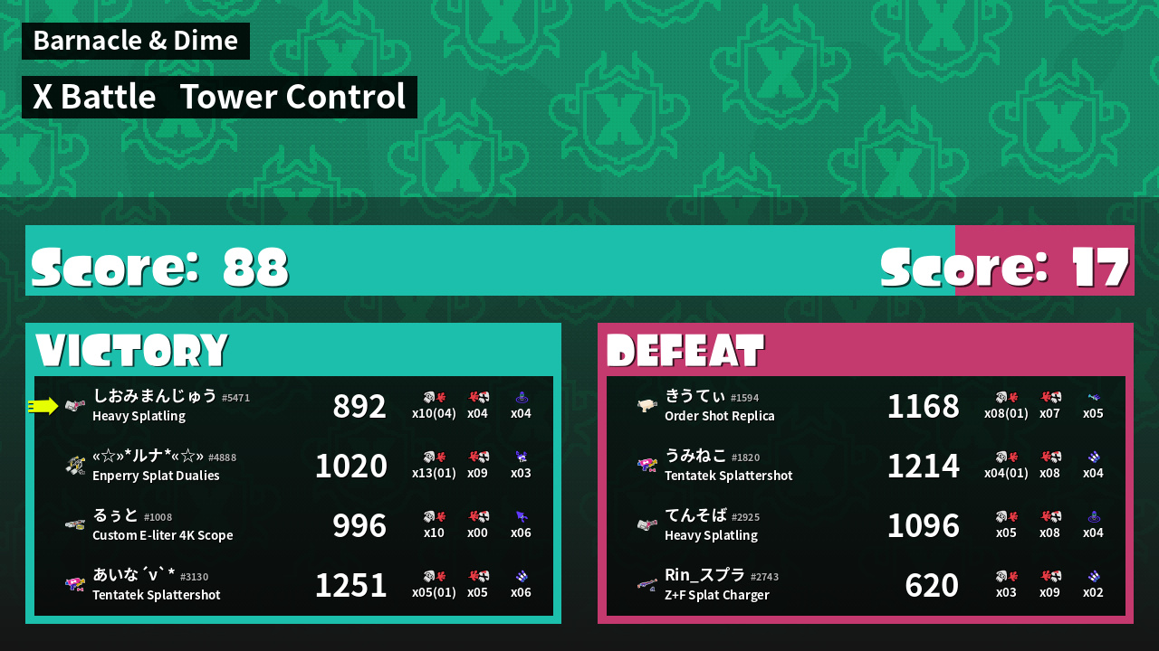 | Mode | Tower Control - X Battle | ||