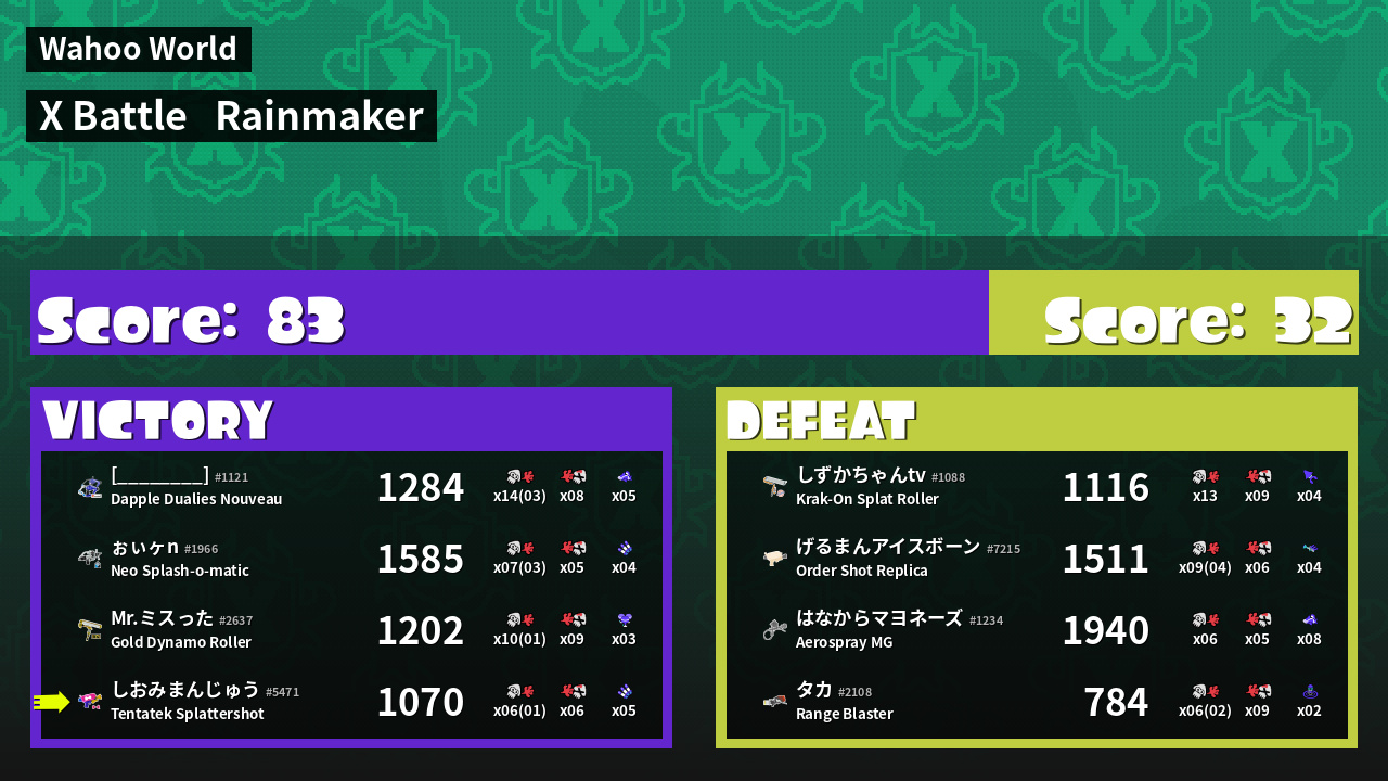 | Weapon | Tentatek Splattershot ( Splat Bomb / Triple Inkstrike) | ||