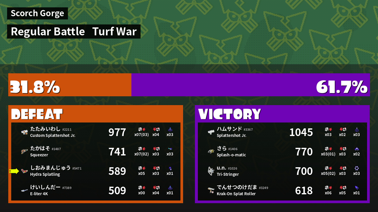 | Medals | #1 Enemy-Base Inker #1 Enemy Splatter #1 Base Defender | ||