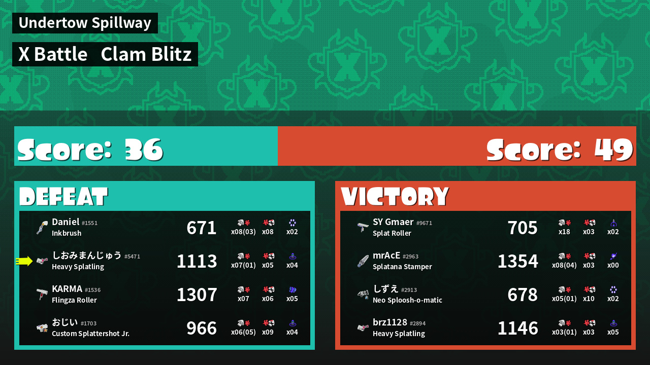 | Mode | Clam Blitz - X Battle | ||