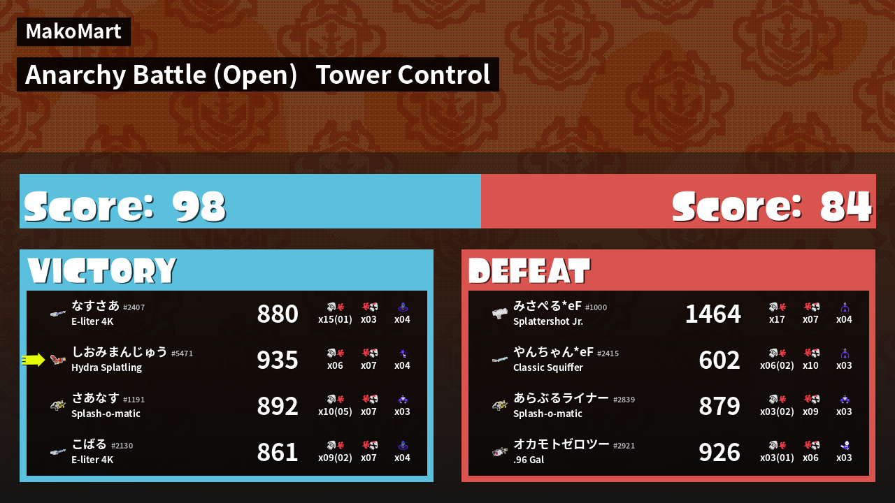 | Mode | Tower Control - Anarchy Battle (Open) | ||