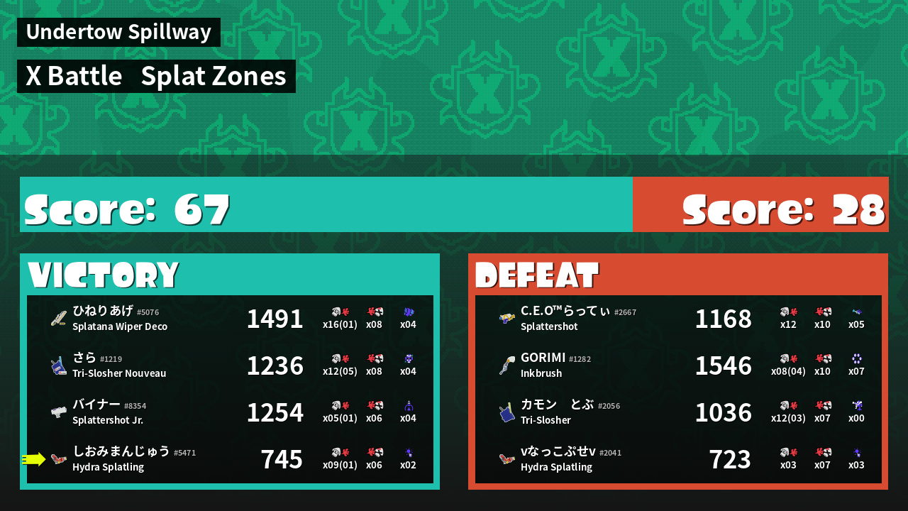 | Mode | Splat Zones - X Battle | ||