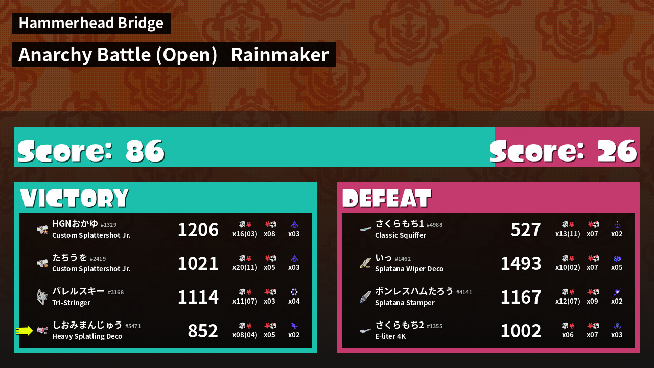 | Mode | Rainmaker - Anarchy Battle (Open) | ||