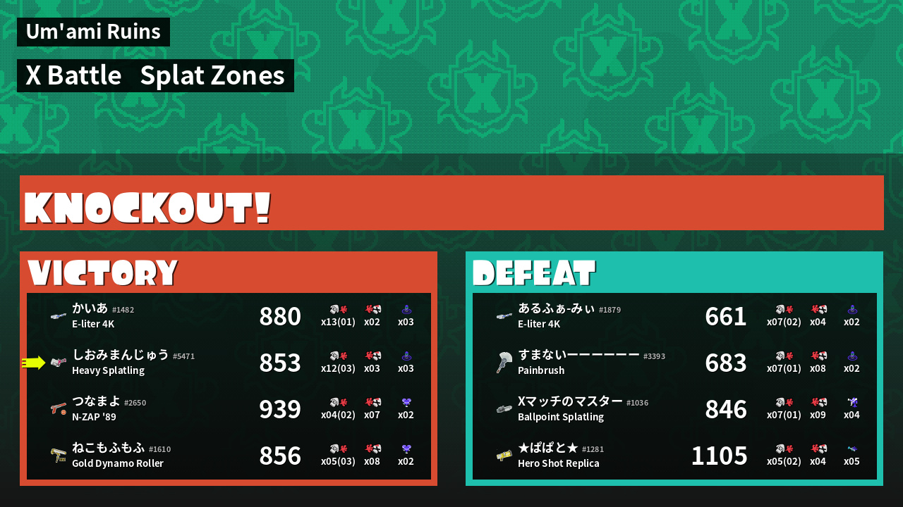 | Medals | #1 Splat Zone Guard #1 Splat Assister #2 Overall Splatter | ||