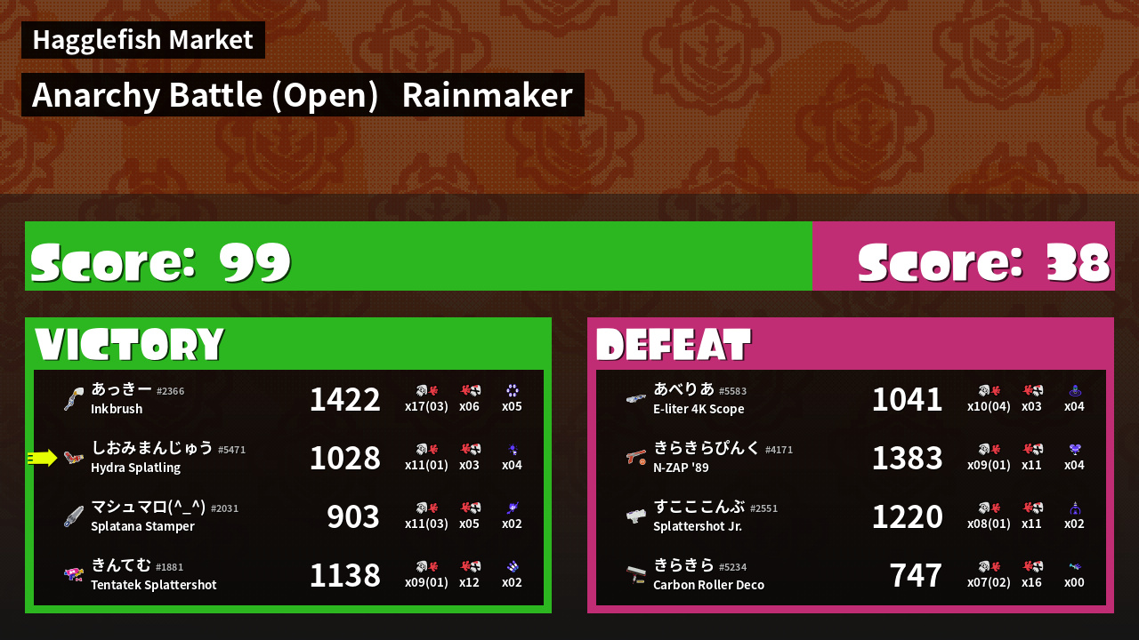 | Mode | Rainmaker - Anarchy Battle (Open) | ||