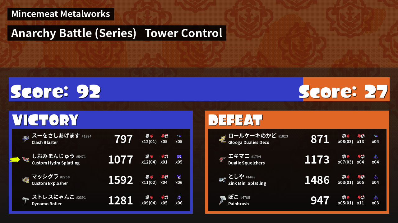 | Medals | #1 Overall Splatter #1 Splat Assister #1 Tower Stopper | ||
