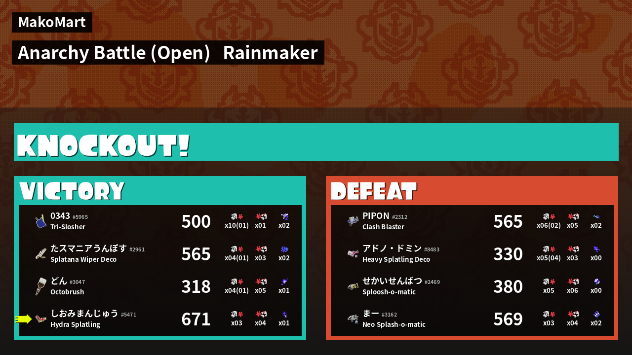 | Mode | Rainmaker - Anarchy Battle (Open) | ||