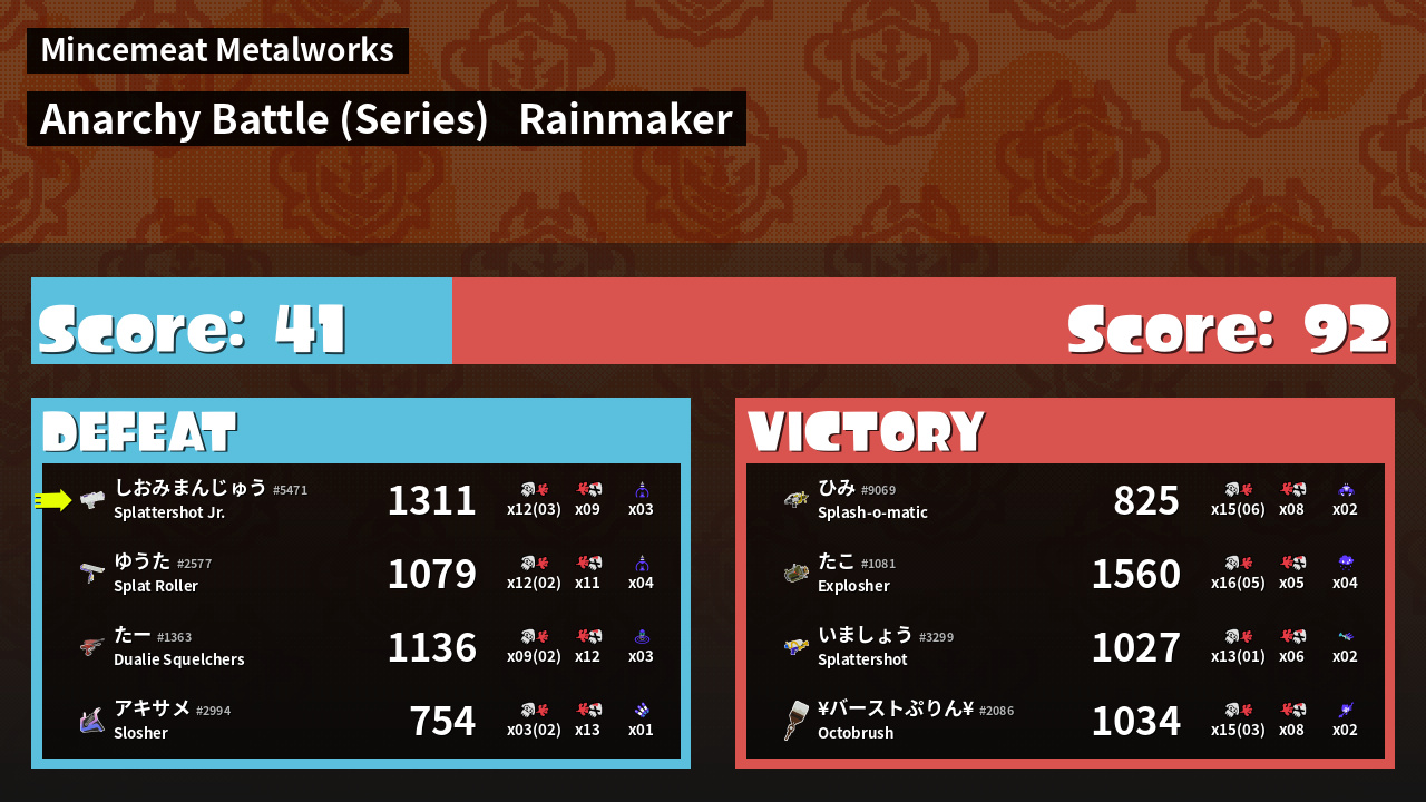 | Mode | Rainmaker - Anarchy Battle (Series) | ||||