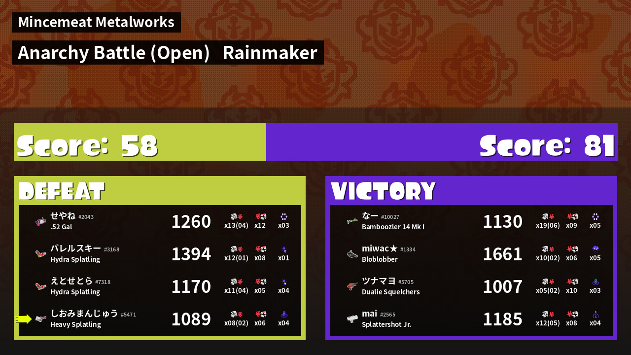 | Mode | Rainmaker - Anarchy Battle (Open) | ||
