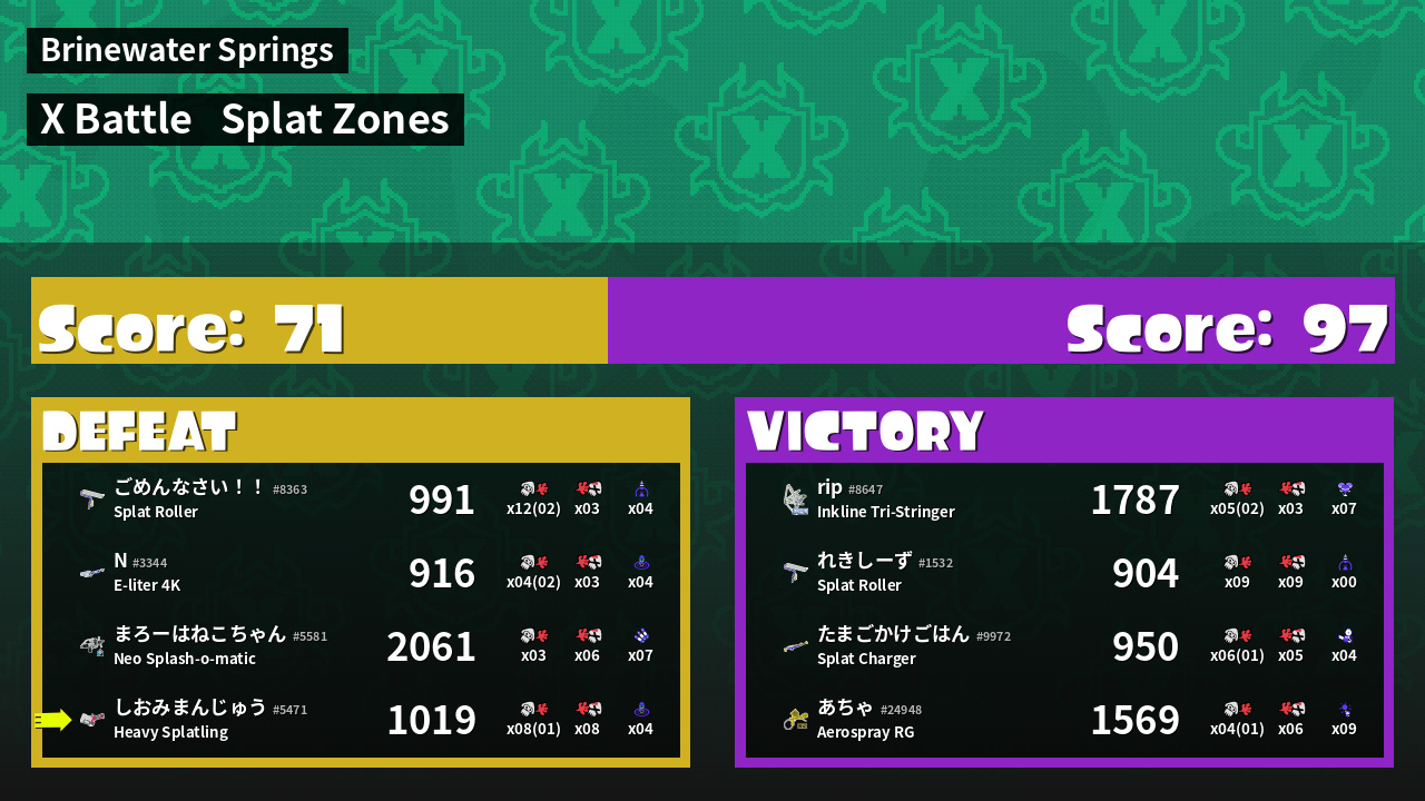 | Medals | First Splat! #2 Overall Splatter #2 Splat Zone Guard | ||
