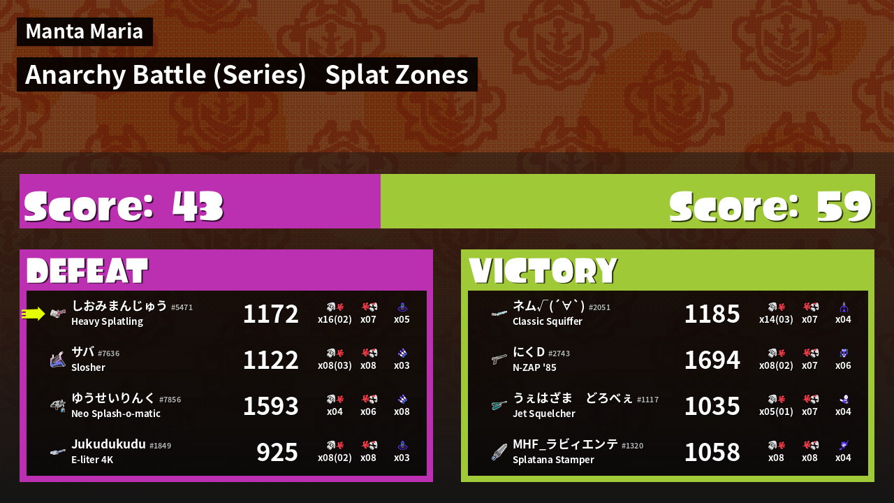 | Mode | Splat Zones - Anarchy Battle (Series) | ||