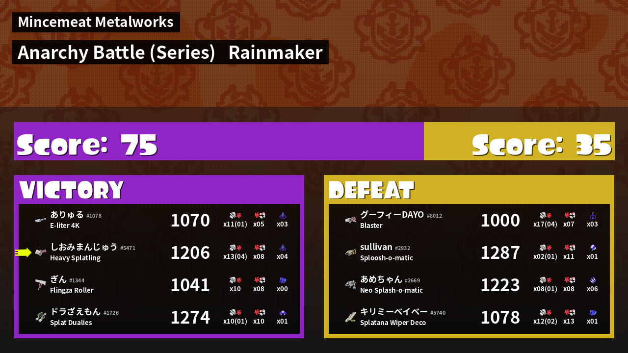 | Mode | Rainmaker - Anarchy Battle (Series) | ||