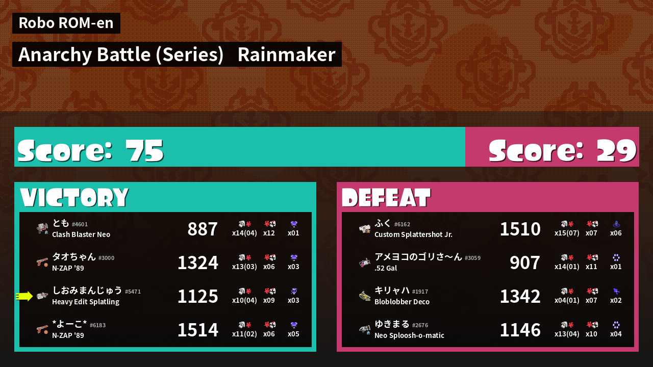 | Medals | #1 Popular Target #1 Splat Assister #1 Rainmaker Stopper | ||