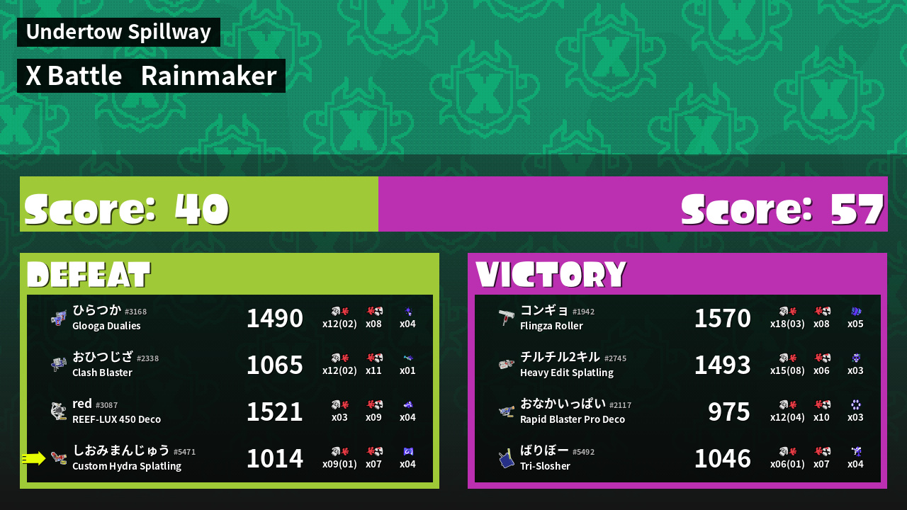 | Weapon | Custom Hydra Splatling ( Ink Mine / Splattercolor Screen) | ||