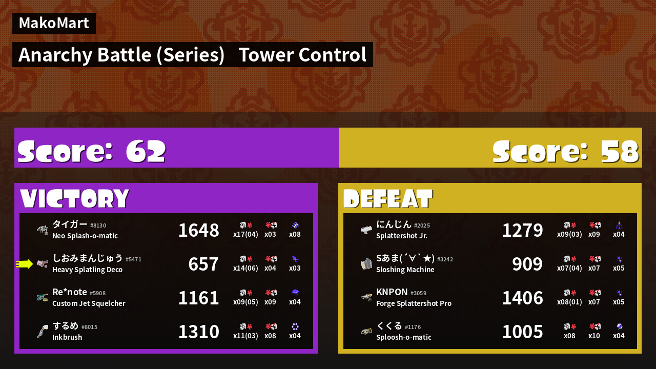 | Mode | Tower Control - Anarchy Battle (Series) | ||