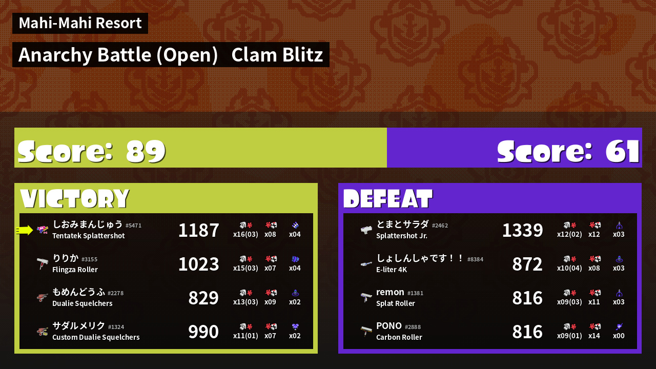 | Mode | Clam Blitz - Anarchy Battle (Open) | ||