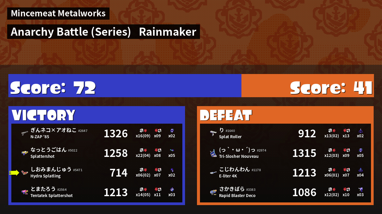 | Mode | Rainmaker - Anarchy Battle (Series) | ||