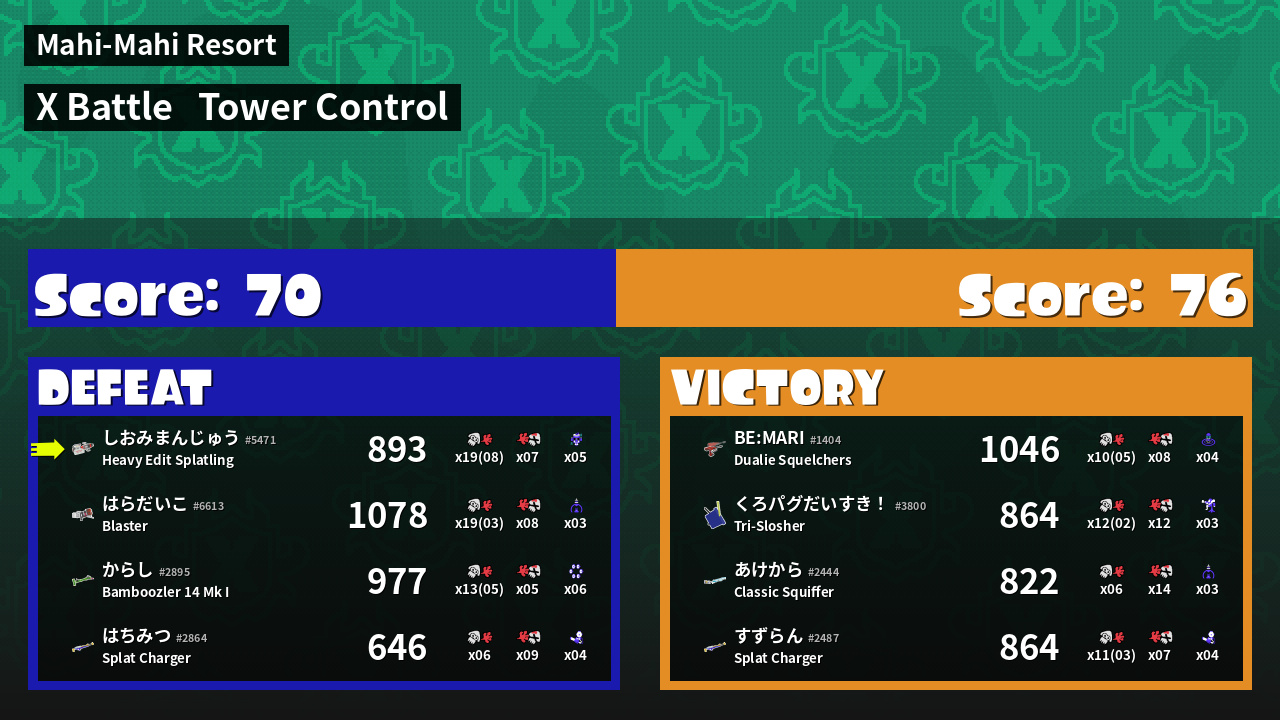 | Mode | Tower Control - X Battle | ||