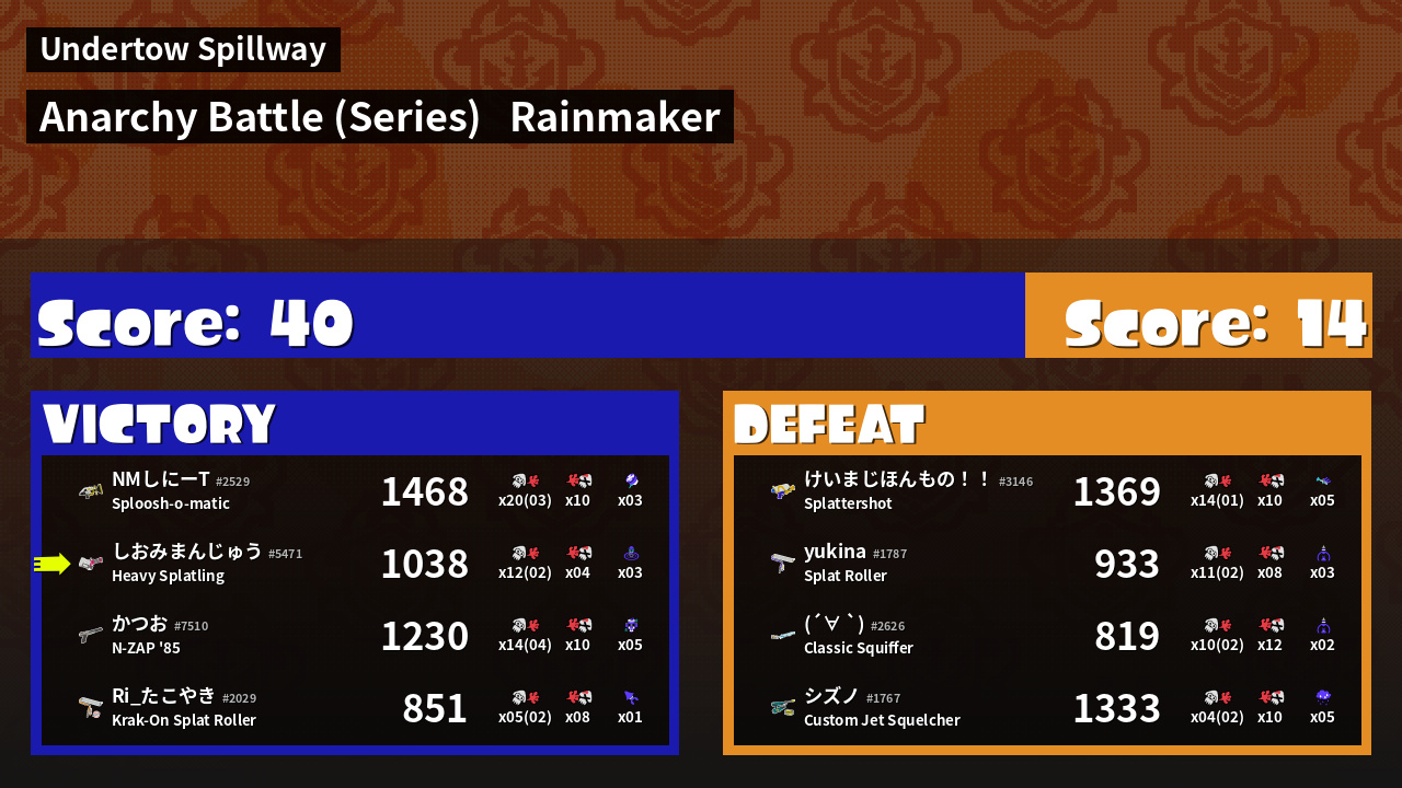 | Weapon | Heavy Splatling ( Sprinkler / Wave Breaker) | ||