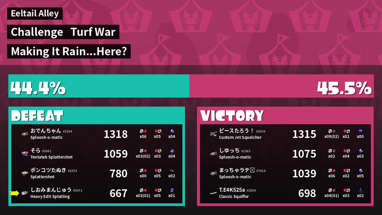 | Medals | #1 Popular Target #1 Base Defender #2 Overall Splatter | ||