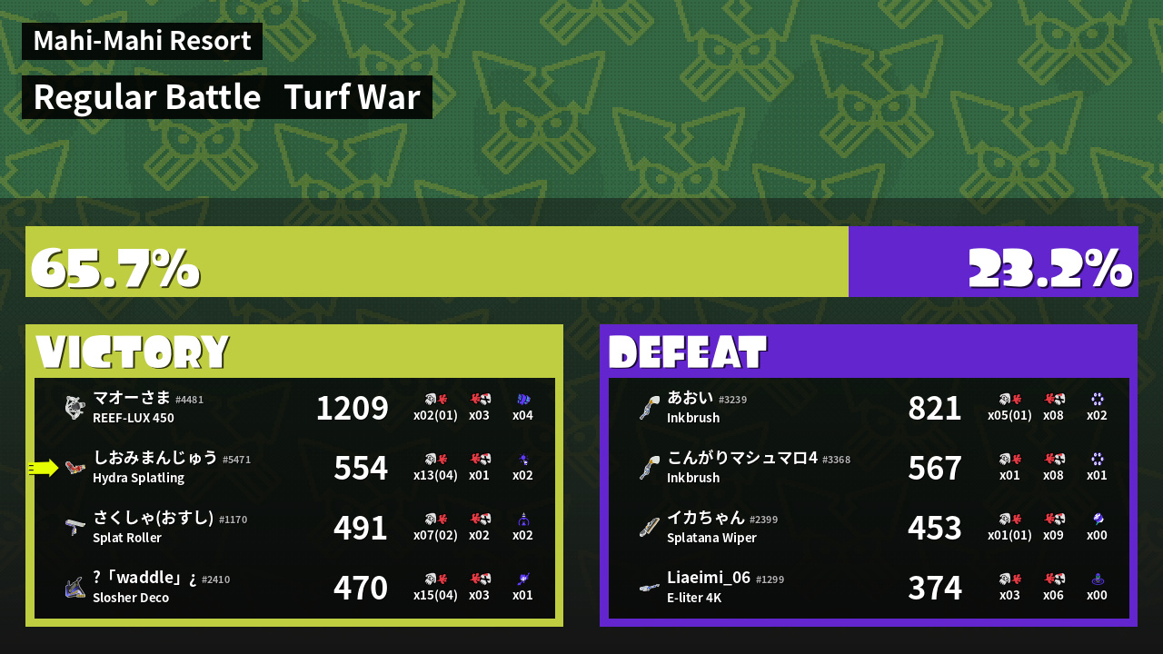 | Medals | #1 Splat Assister #2 Overall Splatter #2 Turf Inker | ||