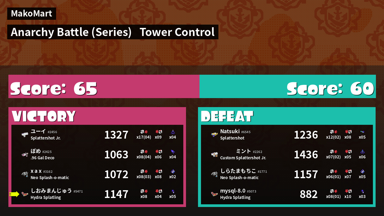| Mode | Tower Control - Anarchy Battle (Series) | ||