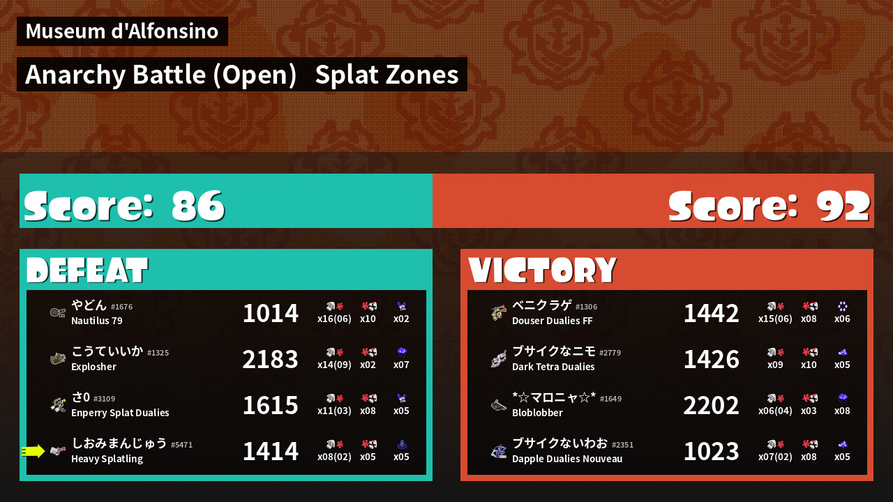 | Mode | Splat Zones - Anarchy Battle (Open) | ||