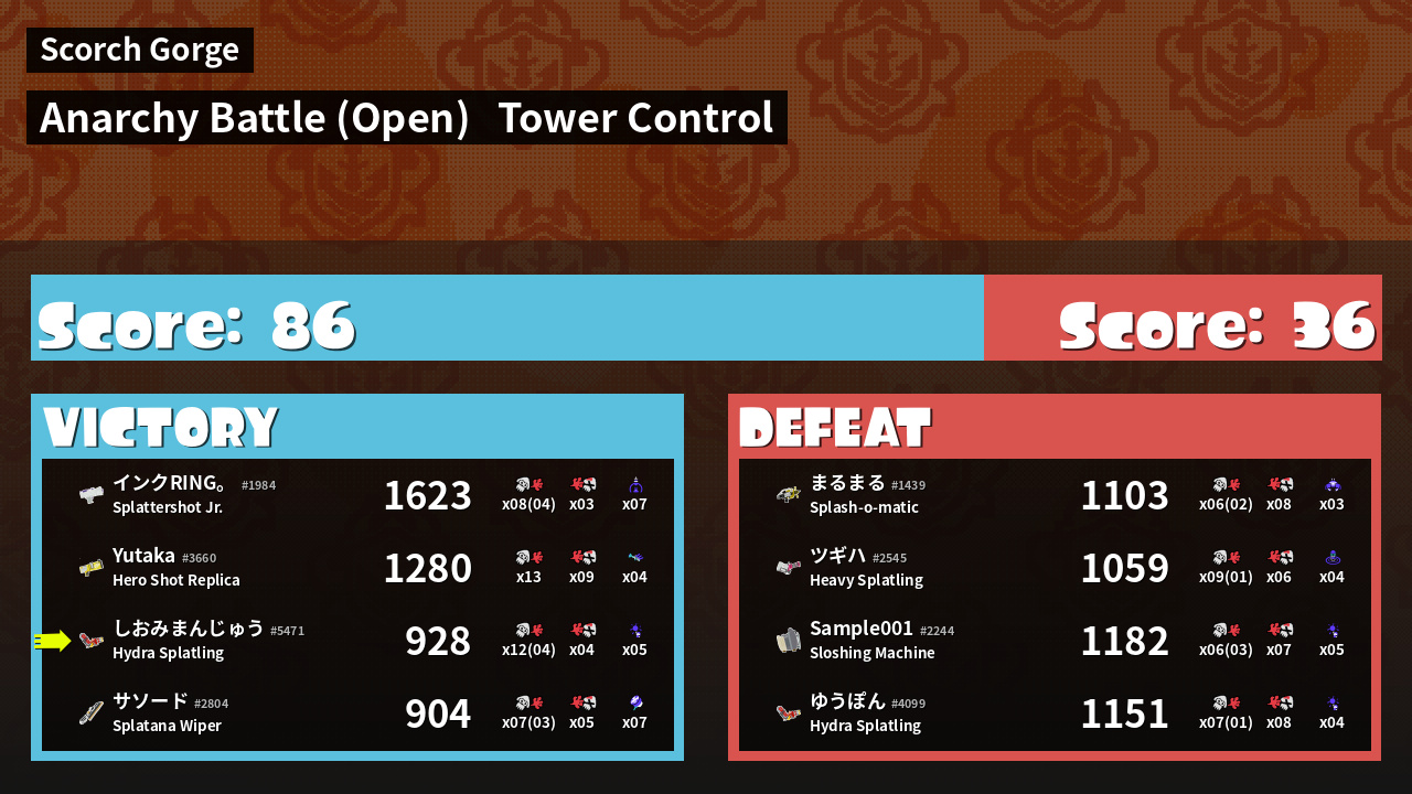 | Mode | Tower Control - Anarchy Battle (Open) | ||