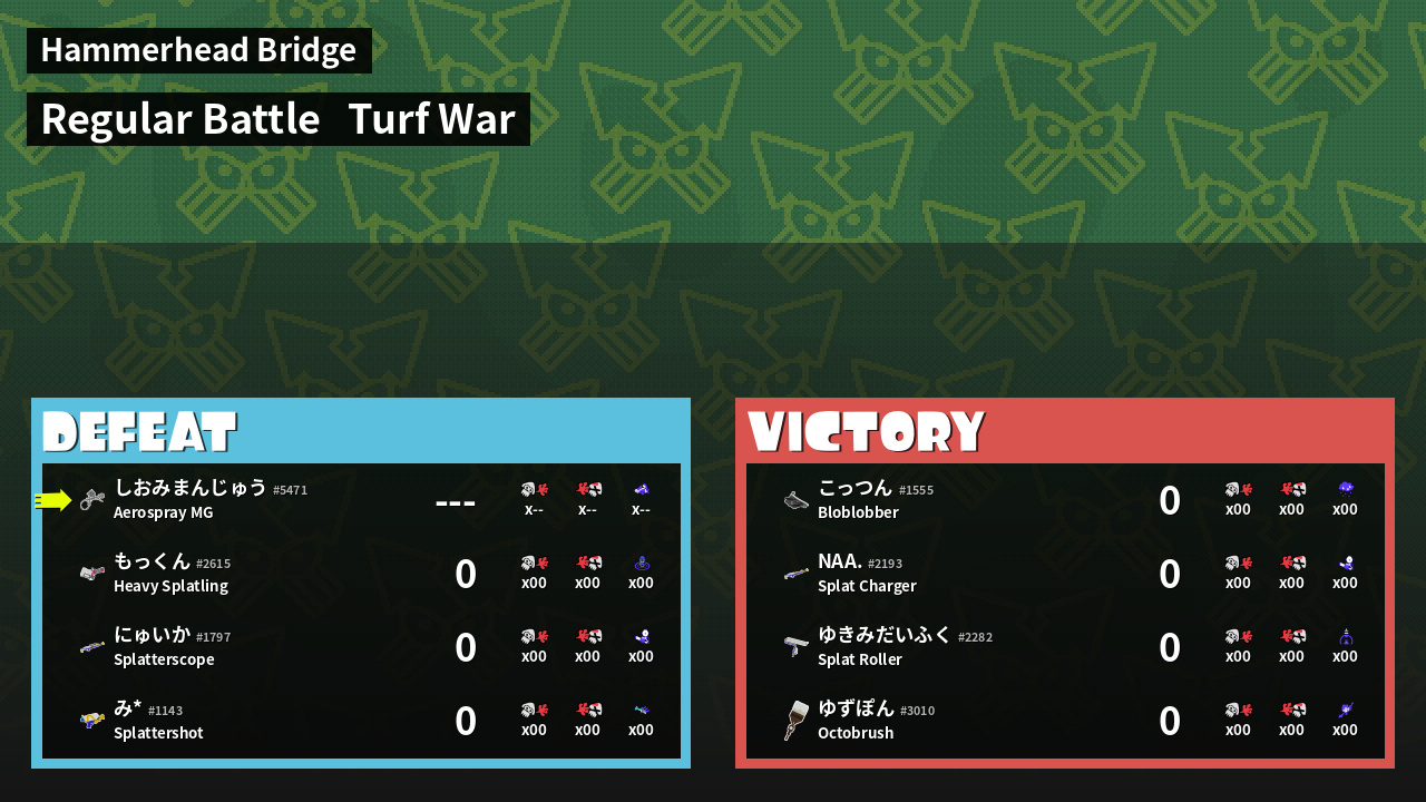| Mode | Turf War - Regular Battle | ||
