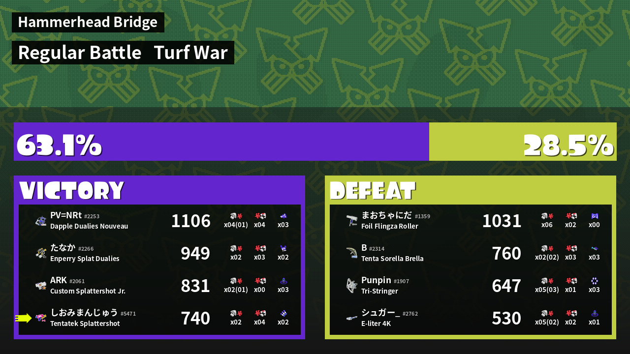 | Mode | Turf War - Regular Battle | ||