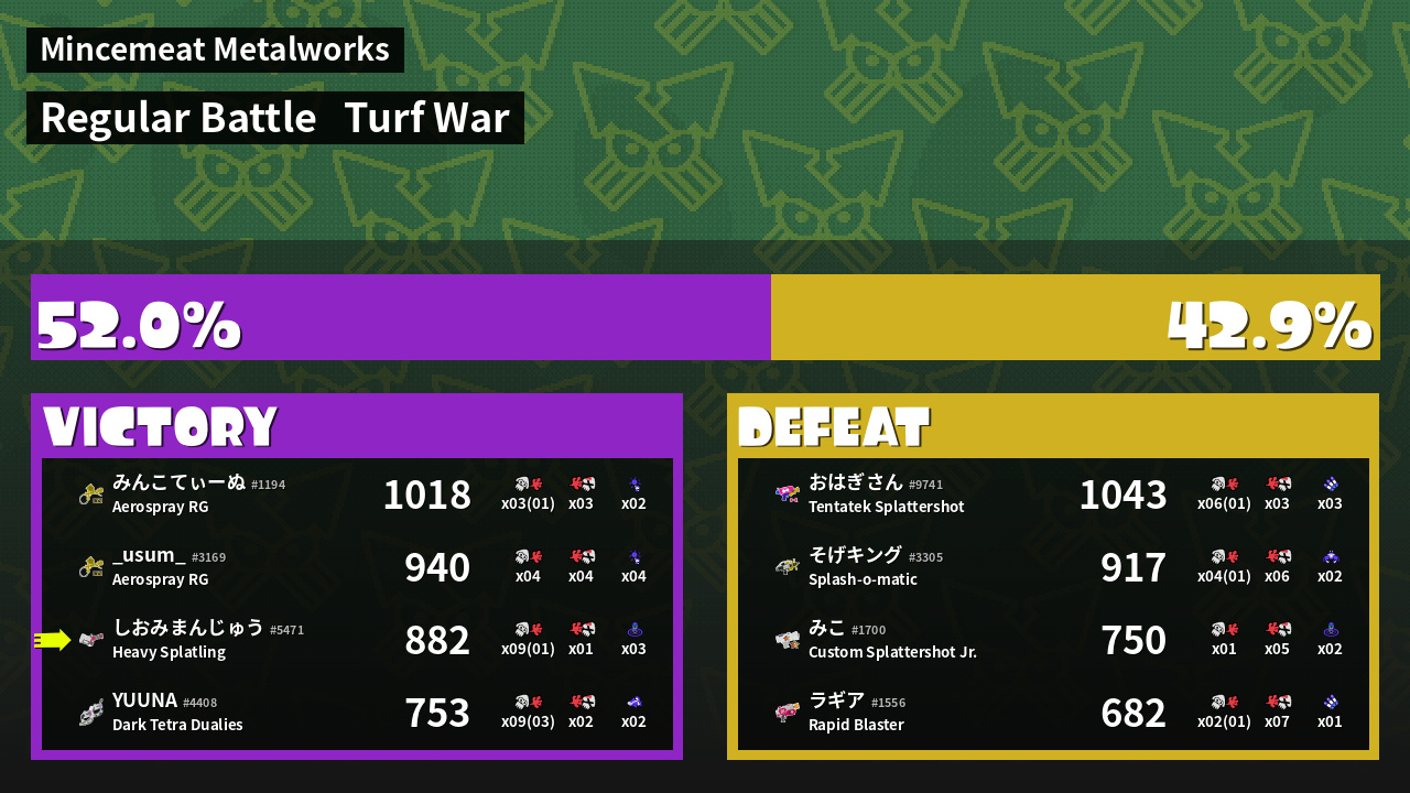 | Medals | #1 Overall Splatter #1 Popular Target #1 Enemy-Base Inker | ||