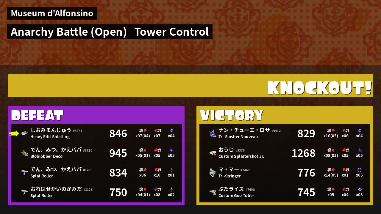 | Mode | Tower Control - Anarchy Battle (Open) | ||