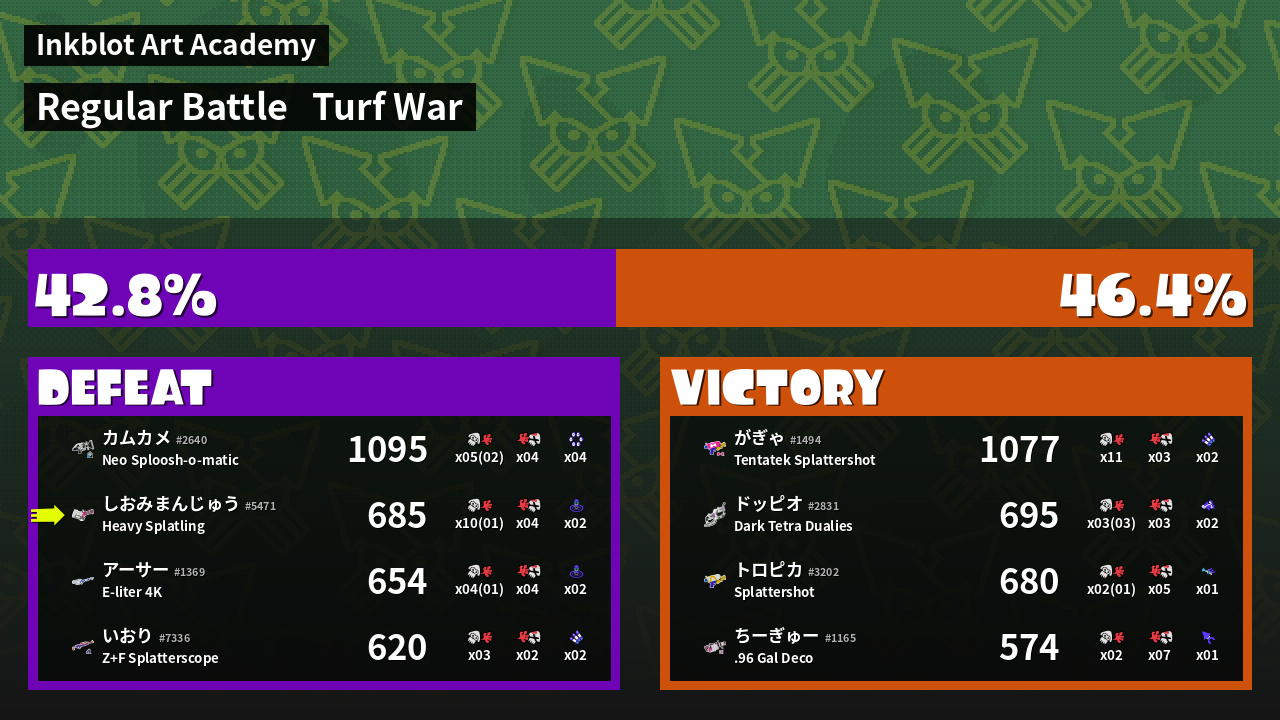 | Medals | #1 Overall Splatter #1 Enemy-Base Inker #1 Enemy Splatter | ||
