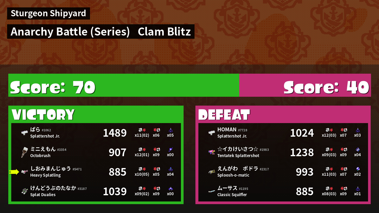 | Mode | Clam Blitz - Anarchy Battle (Series) | ||