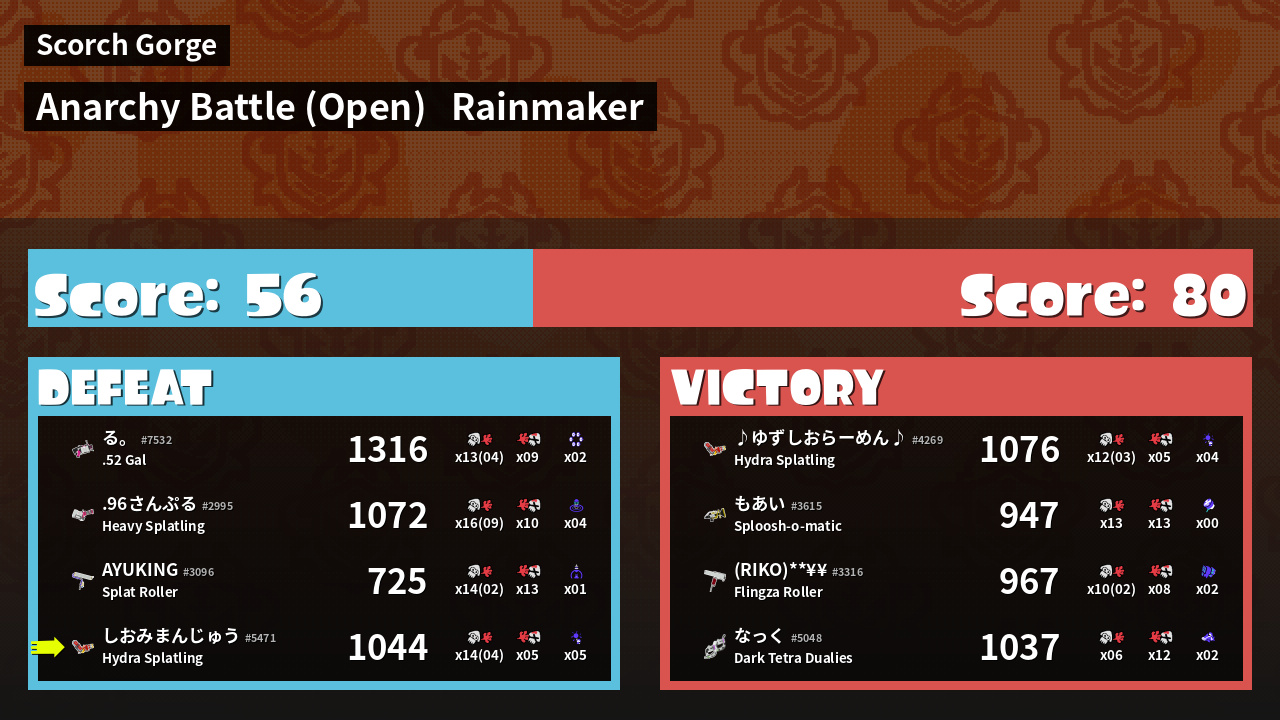 | Mode | Rainmaker - Anarchy Battle (Open) | ||
