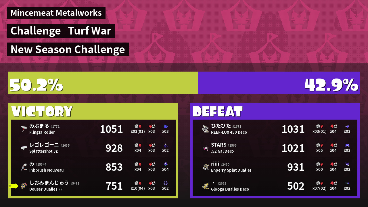 | Mode | Turf War - Challenge | ||