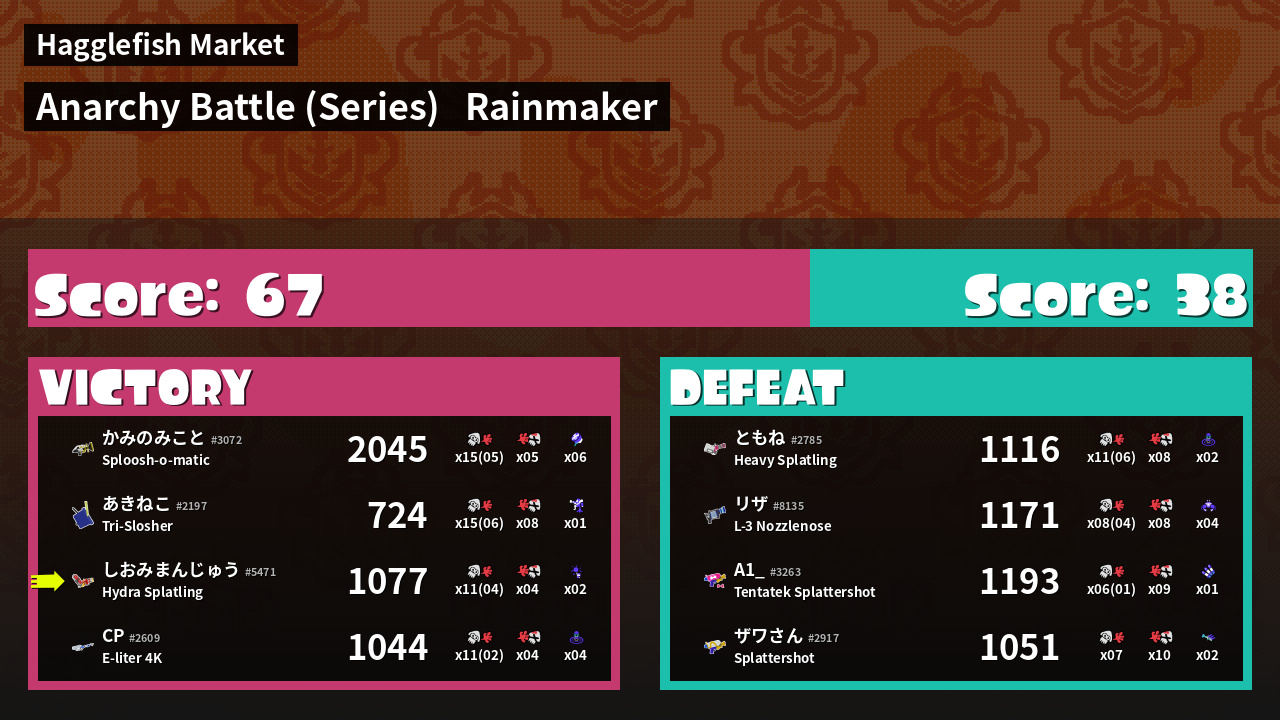 | Mode | Rainmaker - Anarchy Battle (Series) | ||