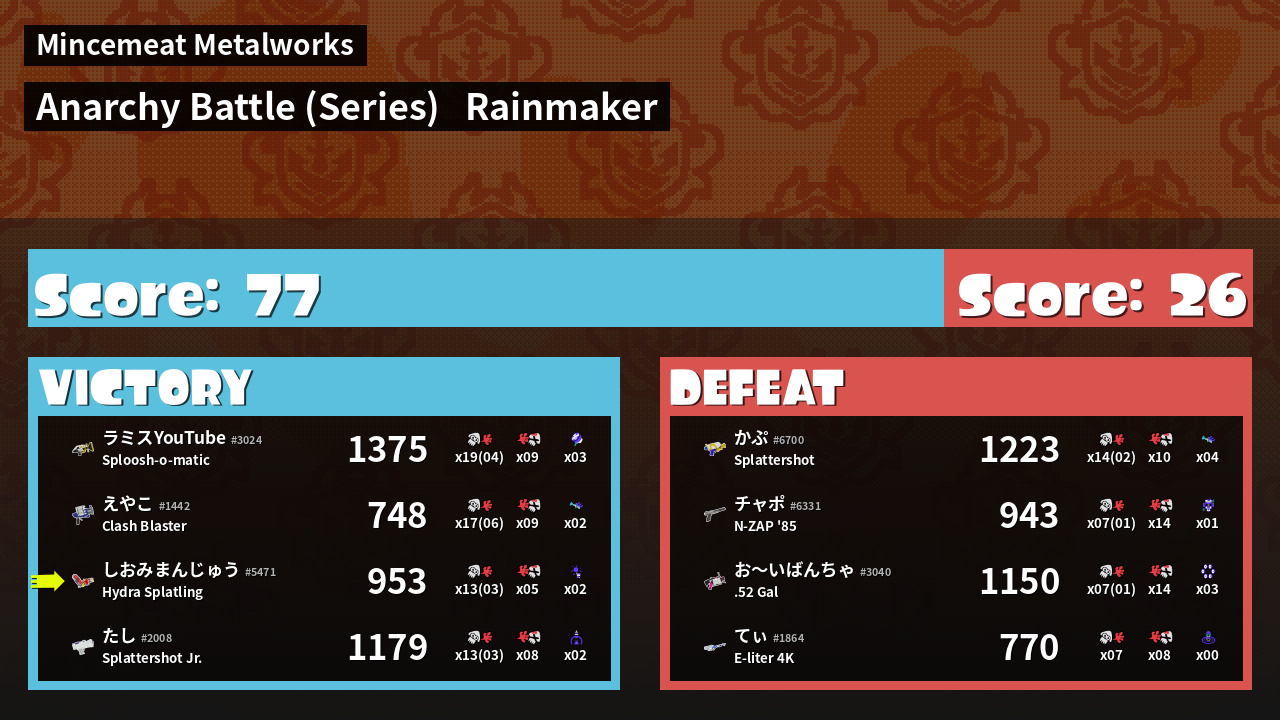 | Mode | Rainmaker - Anarchy Battle (Series) | ||