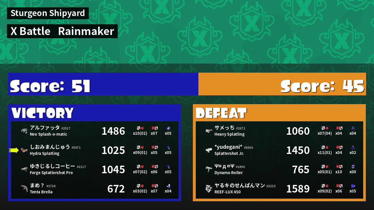 | Medals | #1 Popular Target #1 Enemy Splatter #1 Rainmaker Stopper | ||