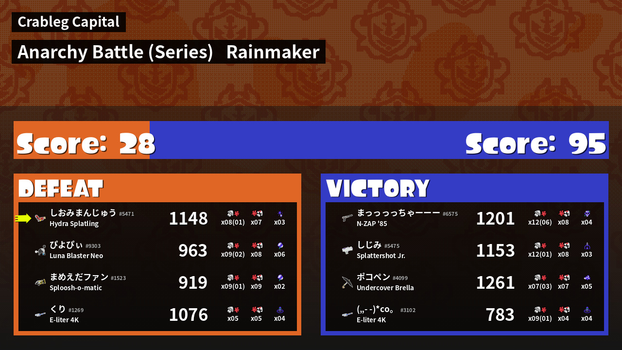 | Mode | Rainmaker - Anarchy Battle (Series) | ||
