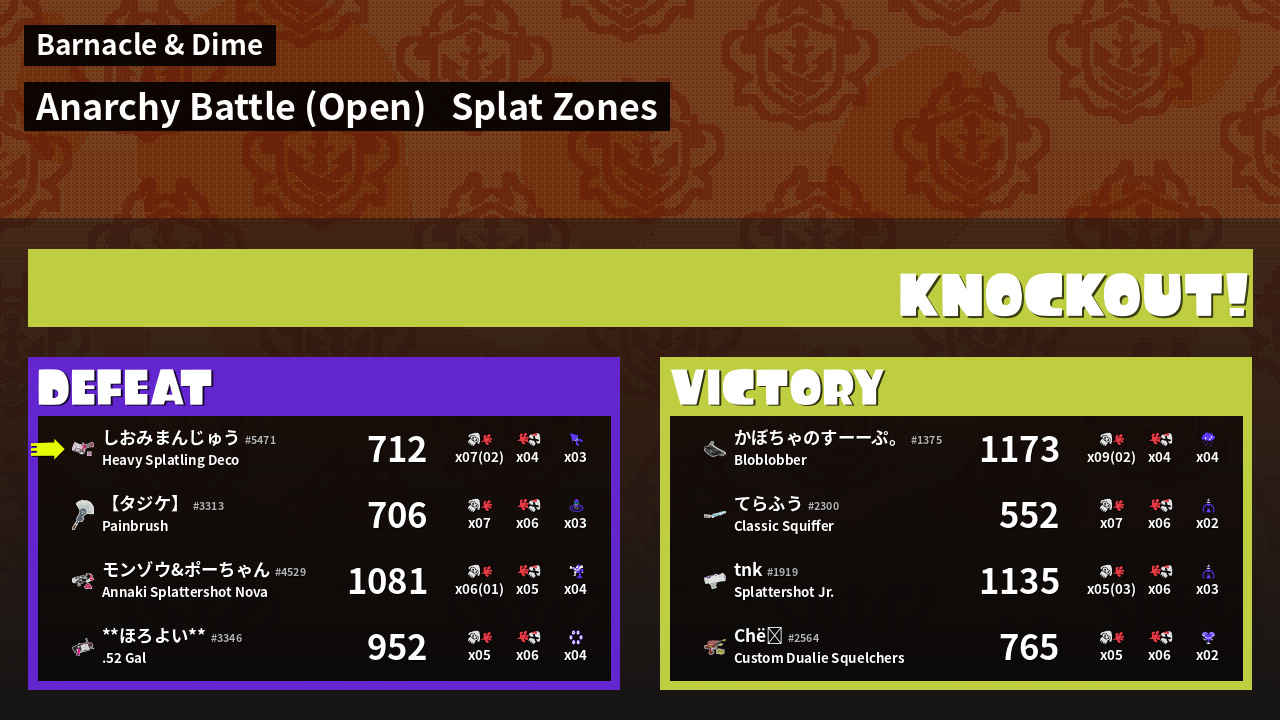 | Mode | Splat Zones - Anarchy Battle (Open) | ||